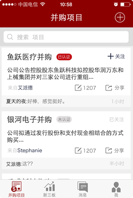 1、及时发布投融资、并购项目信息 2、实时公布项目信息的进展及专家估值 3、线下匹配一手项目信息